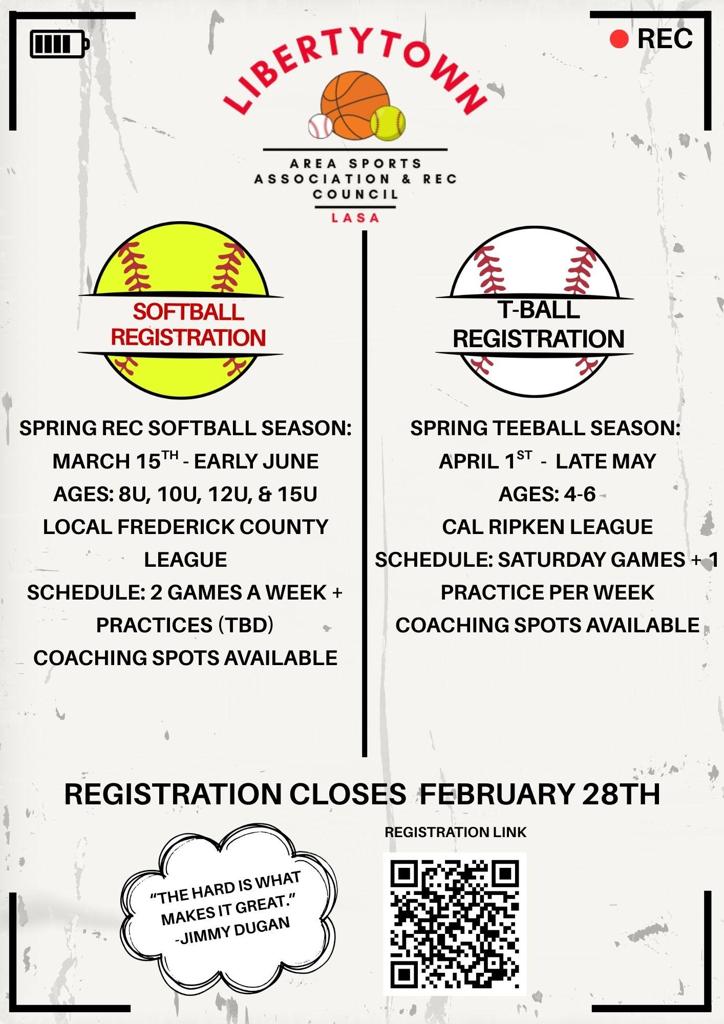 Follow us on Facebook at Libertytown Area Sports Association to get notifications when all sports registrations open.